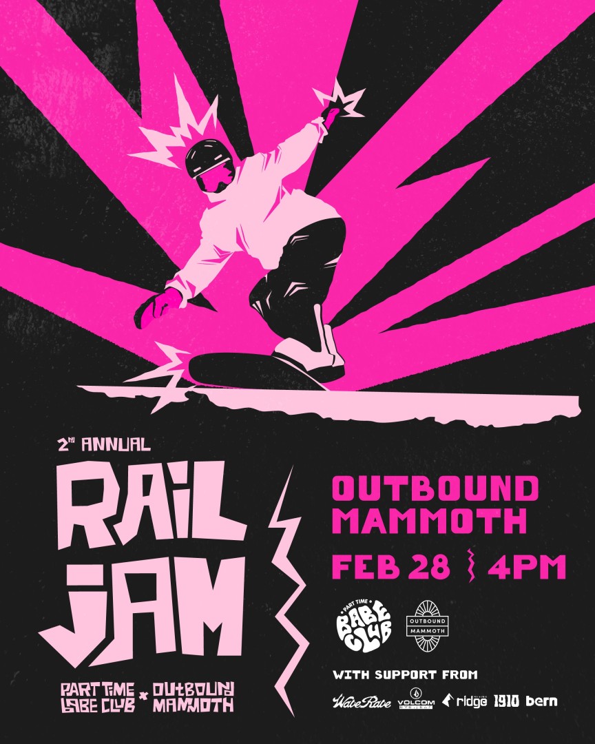 Part Time Babe Club & Outbound Mammoth are presenting a community-powered, parking lot rail jam! Join us for an evening to celebrate snowboard talent & to bring our snow community together. Snowboarders, women & men, will compete for prizes & the top spot! Snow-industry brands will be tabling to the public, so come get your swag! All are invited to spectate & all ages are welcome to compete (under 18 needs parent consent). Bar Sierra will be OPEN & will be hosting the official Rail Jam afterparty!